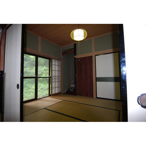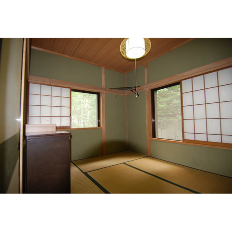 広い道路に面しており、駐車スペースもあるので使い勝手が良い。道路に面しているとはいっても、庭先は木立の奥に包まれているので外からは見えず、きちんとプライベートが守られている。二間ある和室から見えるのも、もちろん緑豊かな森林だ。6畳の和室はリビングを挟んで分けられているので、友人同士で泊まって、男女別の部屋割りをするのも可能だし、2世帯で訪れても距離感を保ちながら快適に過ごすことができる。