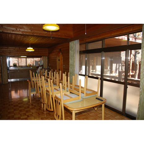15帖もある広いリビング・ダイニングは、やっぱり大勢で囲みたい。上部がアーチ状になっている可愛らしいドアを開けると、そこには約5帖の洋室が5部屋並んでいる。トイレは2つあって大人数でも安心だ。さらにテニスコートが一面ついているのだから驚いてしまう。サークルや会社の合宿所として使うのも良いし、思い切ってイギリスのB&B(bed and breakfast)を気取って、この高原で宿主となってみるのも面白いかもしれない。8畳の和室があるから、ここを管理人部屋としてみるのもいいだろう。同じ広さの仲良くならぶ洋室は、どの部屋にも収納が2つずつ付いている。友人同士で使うのにも、始めて逢った旅人同士で使うのにも都合がいい。