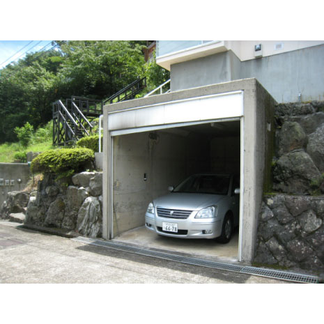 エントランス横にはガレージがあり、玄関までは階段を登っていく。実質2階の高さに1階があるため見晴らしも良い。眼下には伊東の町と海辺が広がる。夏の花火大会も自宅から見ることができそうだ。