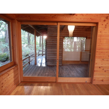 間取りがないのが残念ではあるが、室内の状態、森に一体化する雰囲気をみていただくとぐっと来るものがあるだろう。見るところ、LDKから直接入れる和室2部屋の2LDK。男女グループで来るのも良し、2家族で来るのも良し、窓から緑しか見えないこの環境で、纏まってしっぽり楽しむのもいいだろう。