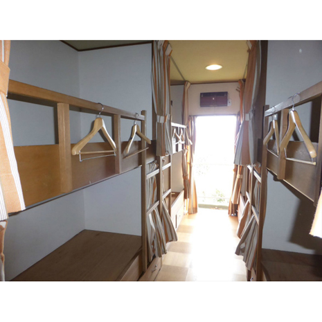 奥には洋室が2部屋。現状は、まるで寝台特急のようにベッドが並んでいる。大人数での合宿施設や、ゲストハウスのドミトリーとして使うのならこのままでもいいかもしれないが、ベッドや壁などを撤去して、ゆったりとした空間として使うのも良いだろう。