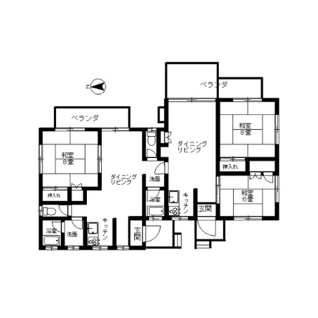 本来は二世帯型の平屋物件。家の真ん中で両世帯が行き来できる仲良し家族向けの間取りだ。でもこちらとあちらで日常と遊びの空間にスッパリ分けて、一世帯で贅沢に使うのもアリな物件だ。