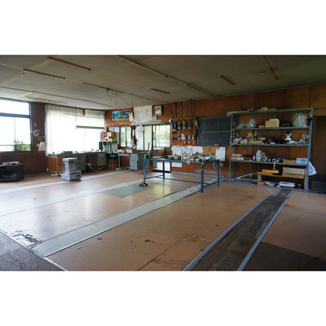 コウバといえばこれだよね的なトタン板の外壁に覆われた平屋建ての建物。資材や作品の搬入に便利な観音開きの戸を開けると、55帖の広い作業場が姿を現す。昭和44年築の工場は、モノづくりの現場の雰囲気を今だ色濃く残している。すすけた壁に取り付けられた配電盤や大きな黒板などは、インダストリアル好きにはかなりの萌えポイントか?これだけ作業場が広ければ、大抵のモノづくりのコウバやアトリエとして活躍してくれること間違いなしだ。作業場の広さがあるのと、敷地が広く車を止めるスペースに余裕があるので、床や壁を貼り替えてダンスの練習場や何かの道場、スタジオなどに転用するのもありかもしれない。