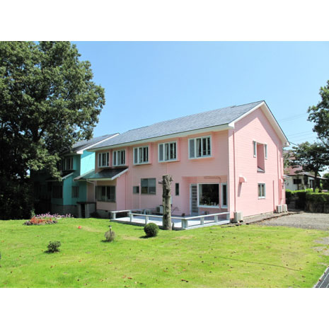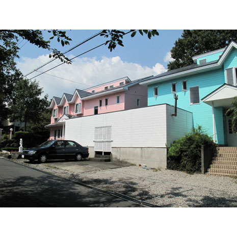 敷地内にはピンクとブルーが青空に映える二棟のペンションが建っている。間取り図を見ると、綺麗なシンメトリーだ。さらにこの二棟は同時に行き交うことができず、個々に独立した建物だとわかる。