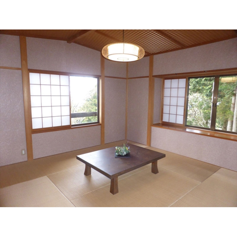 今回ご紹介する別荘は伊豆市冷川の別荘地内にある平屋建ての一軒家。周囲は山林に囲まれているが、建物の東側からは海を遠望できるという、「山、ときどき海」も可能なロケーションだ。車で40分も行けば、そこにはダイビングで有名な富戸海岸が。その日の気分で山側でのんびり、あるいは海側でシュノーケリングやダイビングとアクティブに過ごすこともできる。