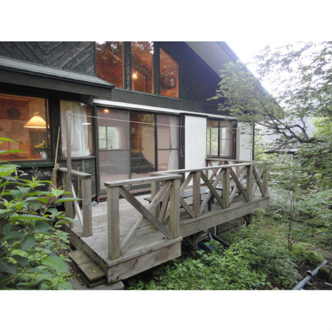 「いいな」と感じる家や別荘をじっくり観察してみると、そこには感じのいい庭や植栽のあることが多い。この別荘はデッキなどのハードはすでに整っている。庭前方の木立や、東に向かって緩く傾斜した土地の形状を活かして庭づくりをすれば、経年の変化とともに良い雰囲気を纏(まと)った美しい別荘として磨きがかかることだろう。
