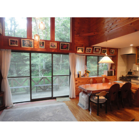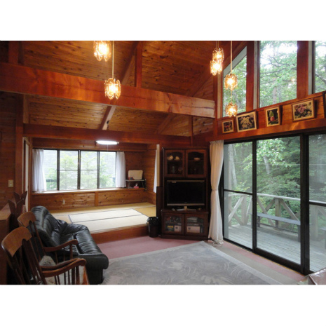 日本で別荘というと洋風な建物のイメージがあるが、こちらの建物はほど良く和寄りである。山荘風の造りは「洋」、しかし全体で見るとなぜか「和」の不思議。外から見た時の墨色の外壁と、庭に植わっている植栽がそう感じさせるのだろうか?