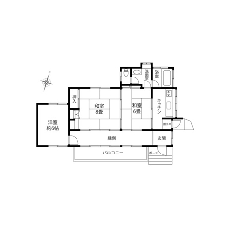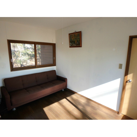 家自体は南向き。写真の通りその先は庭であり、様々な木々が植えられている。この際、現在申し訳なさ程度に設置されたベランダは取っ払ってしまい、ゆったりとしたウッドデッキを作ってみるのをお勧めしたい。目の前にある木はそのまま、ウッドデッキはその木を避けるように敷き詰める。ウッドデッキを突き抜けて葉を茂らすであろう木は、南側の邪魔な存在ではなく、もはやこの家になくてはならない存在になることだろう。夏は日陰を作ってくれ、ハンモックを支えてくれる。そんなシーンは、庭にある木すらも愛らしく思えるスペシャルなウッドテラスに仕上がることだろう。