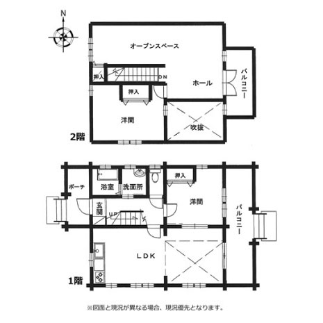 窓の木枠がややベースの木材と違うので、よりこだわるならリノベーションしてもよいかもしれません。厨房とリビングの間にも少し区切りがあるので、取り除いて広々と使ってもいいかも。2階の斜めカット部分は、家具のおさまりが難しくもあるけれど、ぜひこの味をいかしてインテリアを工夫してみてほしいです。