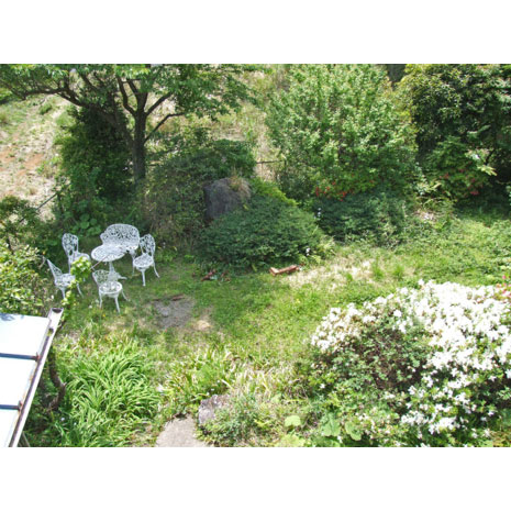 バルコニー部分から階段を降りると庭がある。ぜひ、この小じんまりとしたスペースを有効活用していただきたい。しっかりとした木を見つけてブランコやハンモックなどを下げてもいいし、お気に入りの椅子を置いて日向ぼっこをしてもいいかもしれない。仲間が集まったら、ここでイベントを開いても楽しめるかも。
