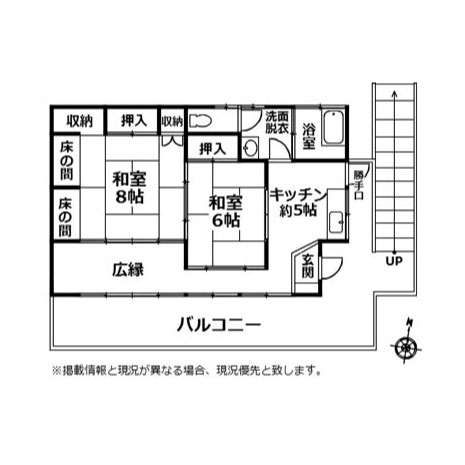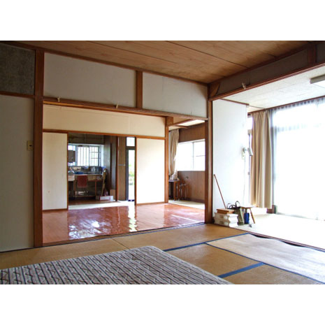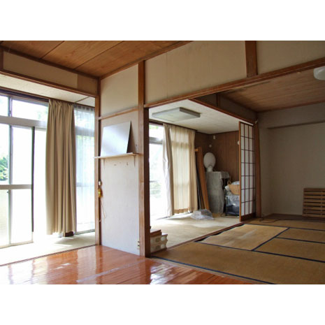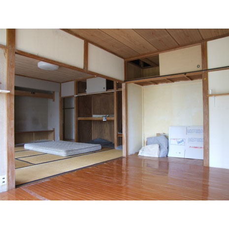 構成は和室8帖、6帖のふたつの和室、それにキッチンと風呂が付いているコンパクトな造り。内装は要リフォームなのだが、だからこそ自分仕様にカスタマイズできる楽しさがある。