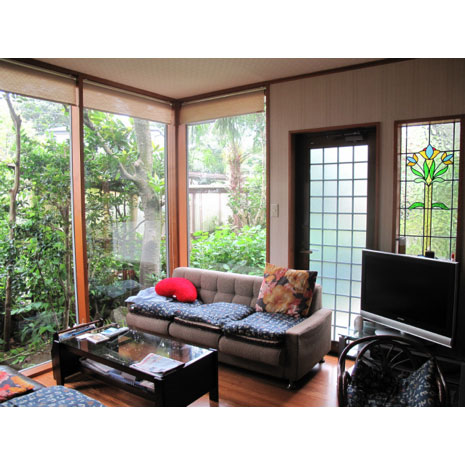 1階部分はリビングダイニングと和室の部分を繋げて、大広間として宿泊客が憩えるスペースにするのもアリかもしれない。大きな窓ガラスからは光がたくさん入り、植栽を眺めながらくつろぐことができる。