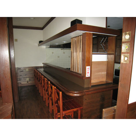 既存の店舗仕様は日本食か、あるいは飲み屋テイスト。バーカウンターのほかに数名で座れるテーブル、作り付けのベンチなど、基本設備は整っている。希望の業態にあわせて内装を整えれば、すぐに営業がスタートできる状態だ。