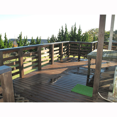広い庭と一体化するかのように、建物内はとにかく開口部が多くて開放的。玄関先のぬれ縁をはじめ、お風呂場にもバスコートが。ちなみにお風呂は温泉権利付きなので、何にも邪魔されることなく温泉を満喫できてしまう。そして極めつけは、16.5畳のLDKから見えるウッドバルコニー越しの広い庭、という訳。