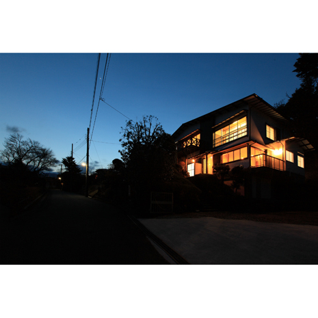 夕暮れからが本領発揮の建物。室内もさることながら、外からの雰囲気が抜群だ。ちょっと外の風にあたりに行くという理由で、虫の音を聞きながら、夜の近隣を散策しにいっても面白いかもしれない。