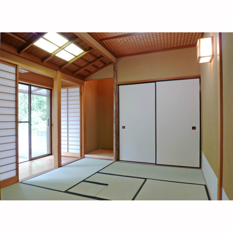 間取りは、至ってシンプル。飛び抜けた要素は殆どなく、ゴロゴロして過ごすようなしっぽりとした感じだ。特記すべきは、茶室仕様の和室が1室。水屋と炉が備わった4.5畳の空間は、柔らかい天窓からの光も取り入れ、壁の仕様、天井の素材、柱と、普通の和室とは違った演出が新鮮に映る。利用しない時は、普通の和室としても利用できる為、客間としての対応も可能だ。お茶を楽しみたい方は自分の休日専用の茶室に友人を招き、時間を気にする事なく休日茶会を楽しんでいただきたい。