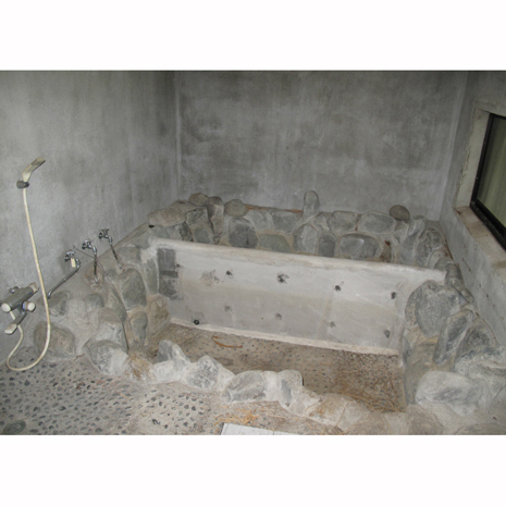 1階は庭からアプローチする無骨なお風呂場。こちらはお気に入りのタイルを探して、自分たちで張っていってみても楽しめる。ベースがある分だけ、大きな工事をせずとも、劇的にリニューアルをする事ができ、とっておきのお風呂になるだろう。もちろん、温泉を通していただきたい。